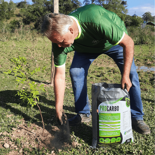 Biochar – carvão vegetal que aumenta a retenção de nutrientes e atua no sequestro de carbono.